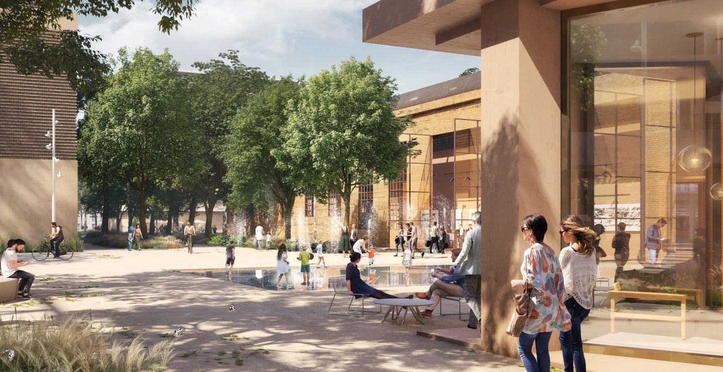 Im Zentrum steht künftig das Zusammenspiel von Wohnen, Arbeiten und Freizeit. Unterschiedliche Nutzungen greifen ineinander und beleben das Quartier von morgens bis abends. Die Erdgeschosse werden zu aktiven Schnittstellen – Orte der Begegnung, die den öffentlichen Raum mit Leben füllen und die Aufenthaltsqualität prägen.