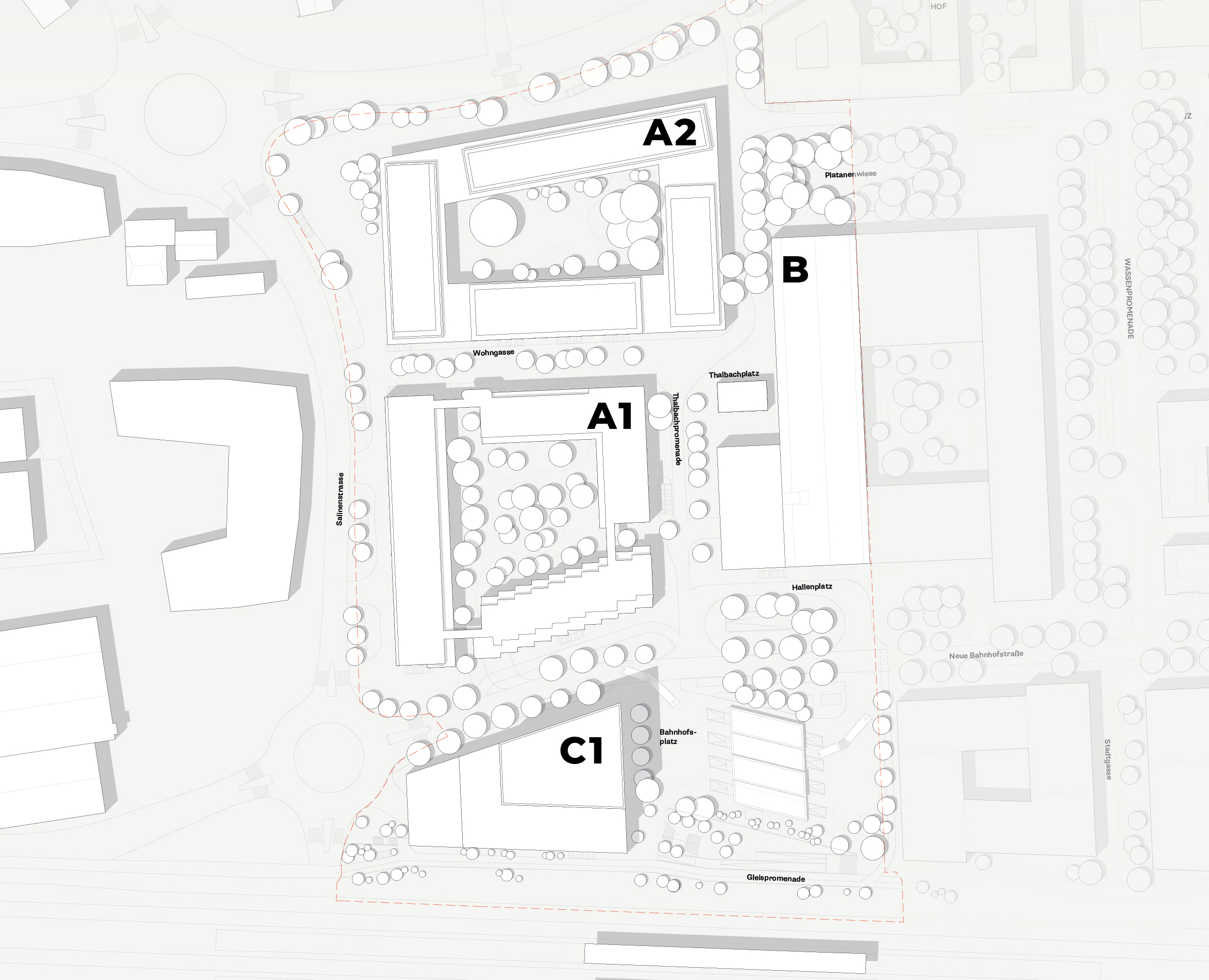 Auf dem Baufeld B2 entsteht zusätzlicher Wohnraum in Kombination mit gewerblichen oder öffentlichen Nutzungen im Erdgeschoss. Für dieses Baufeld ist ein Architekturwettbewerb vorgesehen. Ziel ist eine flexible und nachhaltige Bebauung, die sich in das Gesamtquartier einfügt und gleichzeitig eigene Akzente setzt.